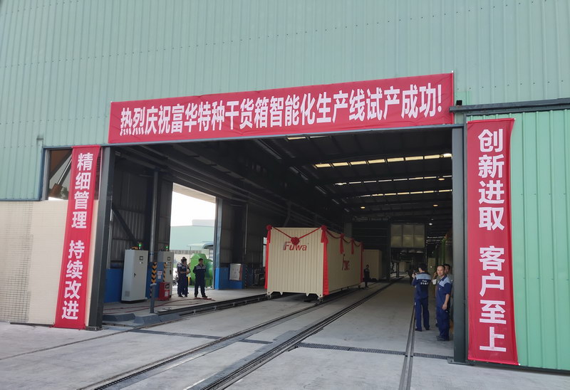 在剛剛過(guò)去一年,同樣是在萬(wàn)物葳蕤的六月,富華標(biāo)準(zhǔn)干貨箱生產(chǎn)線經(jīng)過(guò)富華人一百天的日夜奮戰(zhàn),投入運(yùn)行,第一臺(tái)標(biāo)準(zhǔn)箱順利下線。而在今天,這條特種干貨箱生產(chǎn)線又正式投入使用,這標(biāo)志著富華干貨箱已經(jīng)全面實(shí)現(xiàn)了兩線生產(chǎn)、比翼齊飛的夢(mèng)想!自此之后,富華集團(tuán)集裝箱板塊擁有年產(chǎn)10萬(wàn)TEU標(biāo)準(zhǔn)冷藏箱、年產(chǎn)5萬(wàn)TEU特種冷藏箱、年產(chǎn)30萬(wàn)TEU標(biāo)準(zhǔn)干貨箱和年產(chǎn)15萬(wàn)TEU特種干貨箱四條生產(chǎn)線,真正實(shí)現(xiàn)了集團(tuán)提出的打造“集裝箱超市”經(jīng)營(yíng)目標(biāo),在滿足客戶貨物裝載基礎(chǔ)需求的同時(shí),也可以滿足其多元化和個(gè)性化的需求。