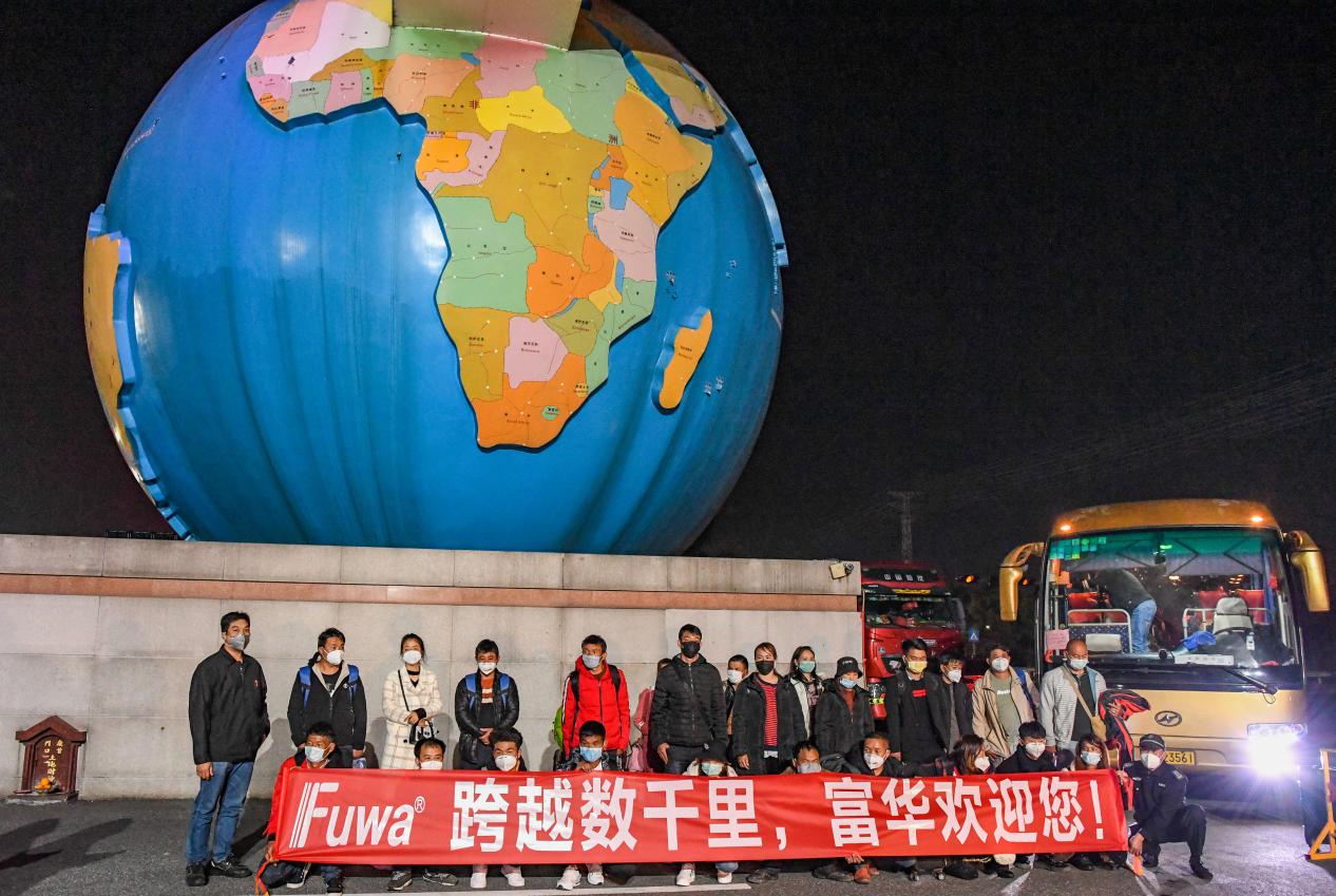 2月25日凌晨兩點(diǎn)時(shí)分,一輛載著25名富華員工的大巴車安全抵達(dá)廣東富華機(jī)械裝備制造有限公司。員工們背滿行李,身顯疲憊地走下車,雖然已是深夜但大家依舊面帶笑容?!案兄x公司不遠(yuǎn)千里接我們回來,真的非常感謝!”一位戴著帽子皮膚黝黑的員工激動地說到。